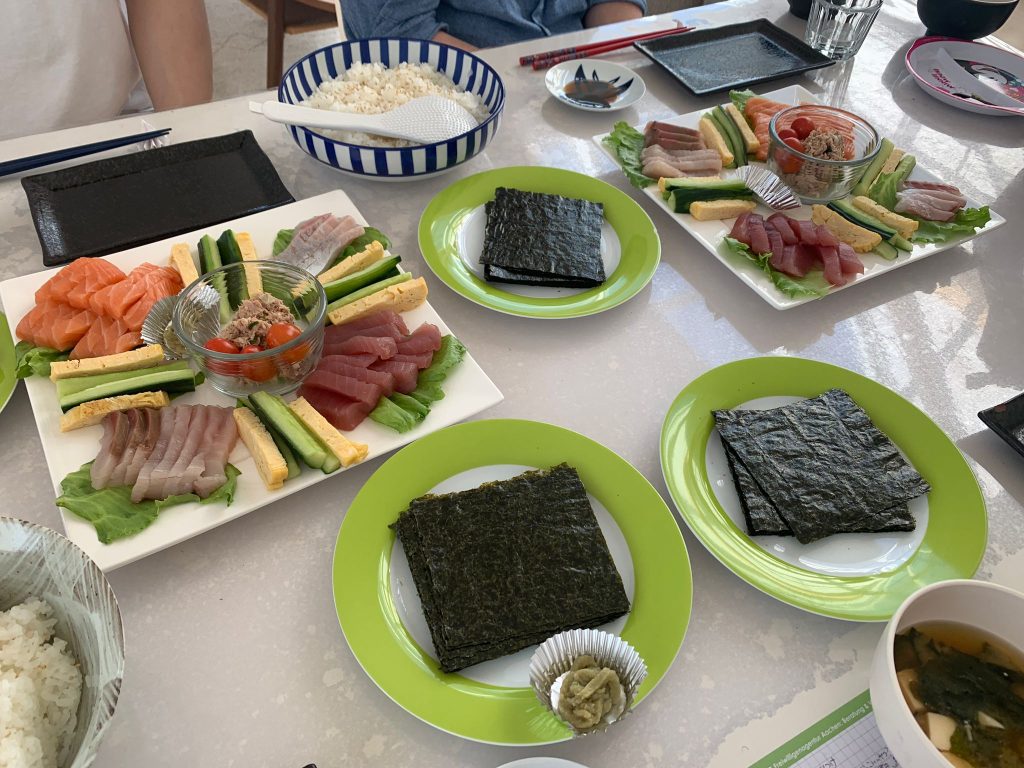 マーヴィンと一緒に工藤さんのお宅にうかがいました。お父さん、お母さん、息子さん、娘さんの4人家族です。お昼ご飯に手巻寿司をいただきました。魚の種類も食材も豊富でした。お昼ご飯のあとで、色々日本のゲームをしました。まずはカルタで遊びました。子供さんたちが思ったより強くてびっくりしました。次は、福笑いとドラえもんのマージャンで遊びました。福笑いというのは見ずに、紙で顔を作ってみるゲームです。見えませんから、顔が変になりました。そして、子供たちが折り紙を教えてくれました。子供たちとマーヴィンはとても上手に手裏剣と鶴を作ったんですが、私にはとても難しくて、大変でした。。晩ご飯の前に工藤さんが浴衣を着せてくださいました。初めて浴衣を着て面白かったんですが、私には全然似合わないと思いました。(マービンにはよくにあってましたけど)