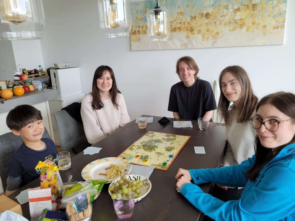 その後、みんなでボードゲームをしました。息子さんは海賊が大好きみたいで、ほとんどのゲームが海賊がテーマでした。遊んだのは、小さな木製の船を小さな送風機で地図の上を動かすゲームで、とても面白かったです。