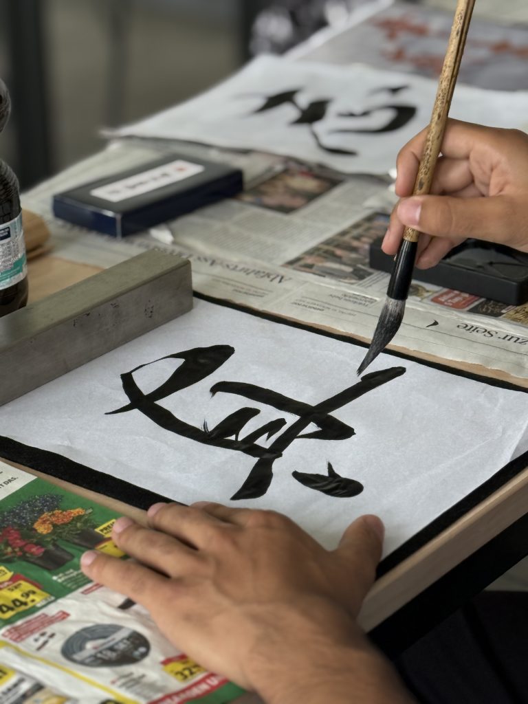 mitmachen möchten, darum gebeten, sich selbst zumindest einen Kalligraphie-Pinsel zu kaufen und ein geeignetes Gefäß für die Tinte (z. B. einen Teller oder eine Schüssel) mitzubringen. Der Pinsel kann z. B. bei Takagi auf der Immermannstraße oder im Internet erworben werden.